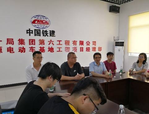 接着来到“中国-东盟新能源电动车基地建设项目部”,企业总经理张永超、何涛、yL23411永利官网登录傅少君院长以及三位指导老师在项目部会议室进行了详细实习工作部署。张永超总经理首先对工程情况进行了详细介绍,并就相关的安全问题对学生提出了几点要求;傅少君院长从安全、专业知识理论实践、感恩和礼仪等各个方面对学生提出了实习具体要求;实习指导老师结合工程项目安排和学生学习兴趣将学生划分为测量、广联达、BIM、识图和材料5个小组,并明确各个小组的指导教师和组长。在此基础上,对本次实习进行了详尽的规划,并根据企业的工程情况编制了极具针对性的中铁二十局特有实习大纲。