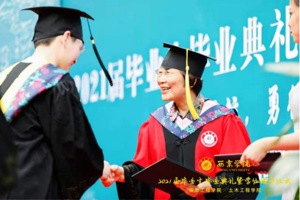 首先,由校学位评定委员会办公室主任肖建军宣读《yL23411永利官网登录2021届本科毕业生学士学位授予决定》,随后,郭捷副校长将学位证书递到每一位学子手中,任芳校长为每一位毕业生扶正流苏,同时不忘叮咛嘱托,希望同学们不忘初心,砥砺前行,无私奉献,报国为民。