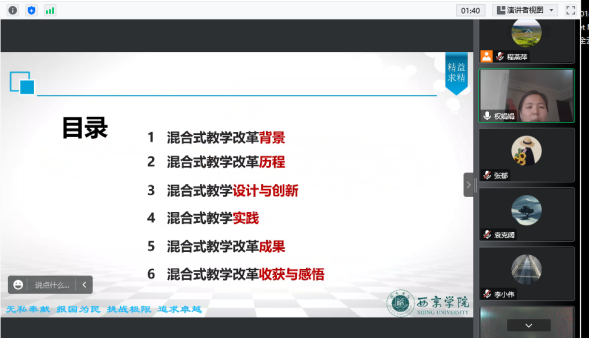 权娟娟首先汇报了混合式教学改革的背景,教学模式的改革迫在眉睫,然后以《工程测量》课程混合式教学改革为例,介绍了课程的改革历程、教学设计与创新、教学实践和改革成果,梳理了教学过程中的问题、难点,从线上线下项目式教学多方面多维度的解决教学问题。