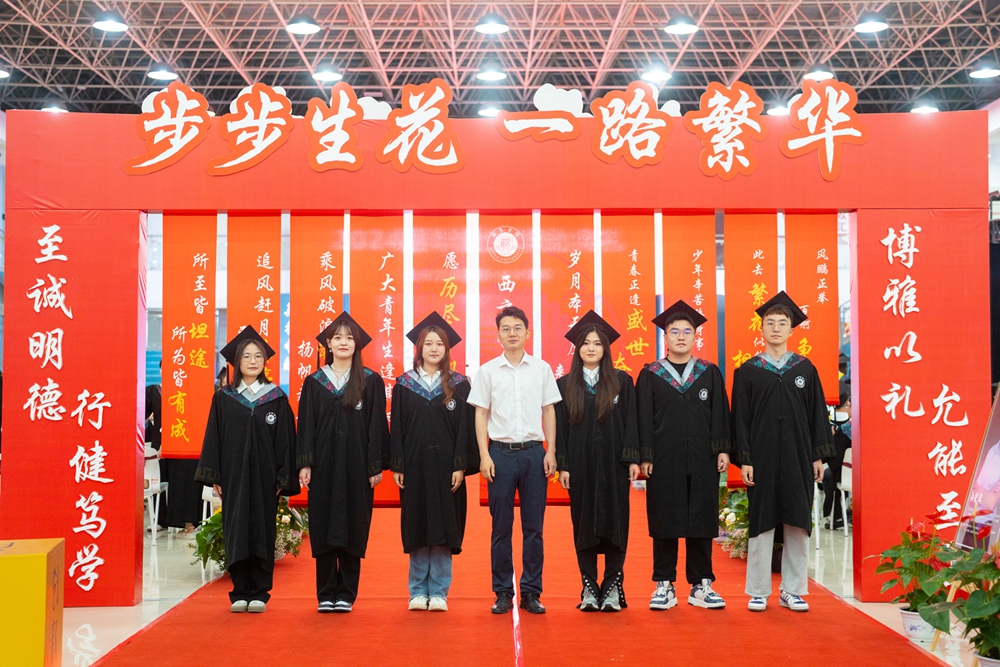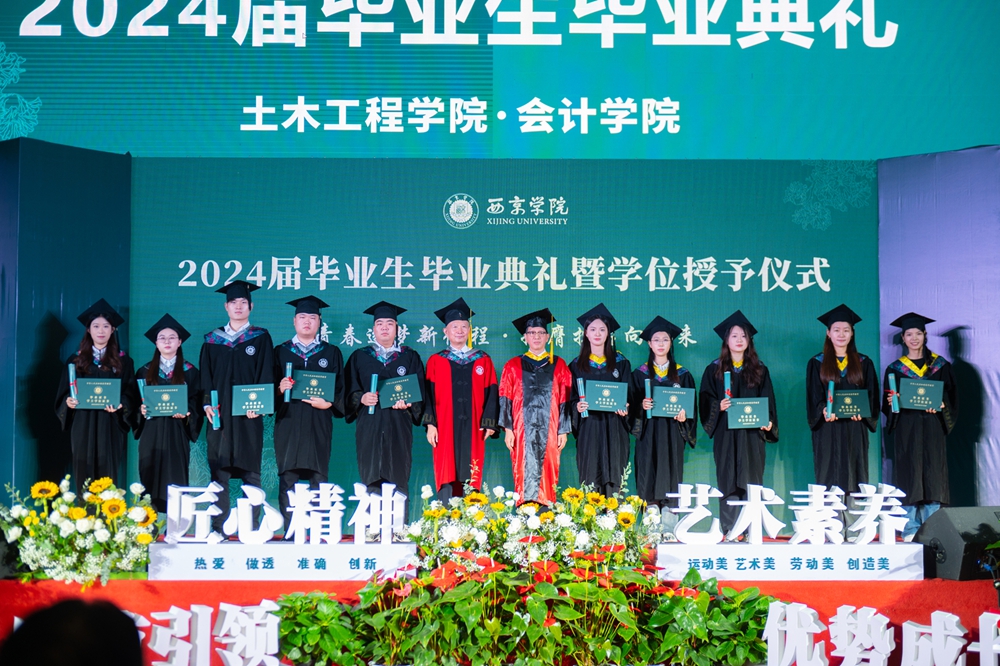 会计学院杜盼盼老师讲述了与学生们一起准备专业证书考试、挑战学术难题、创建“财税说”抖音账号等经历。杜老师表示,这些经历不仅锻炼了学生们的能力,也让他们更深刻地理解了知识的力量。她鼓励毕业生以校训为灯,指引人生路;以友情为伴,共创事业路;以理想为帆,成就西京人。