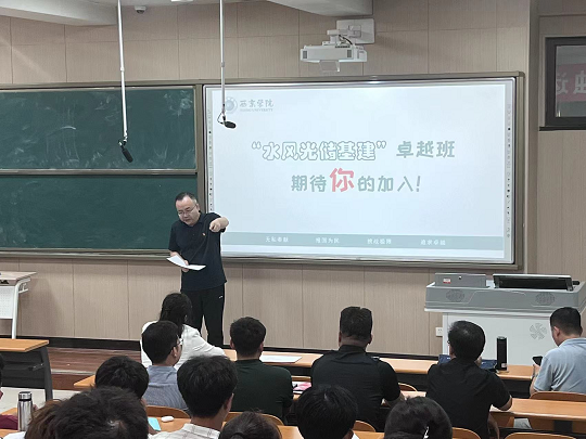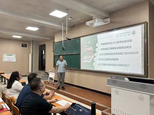 山川工程科学研究院院长孙超伟介绍了研究院的建设背景、定位、规划及师资力量。他特别介绍了依托土木工程专业“风光蓄基建工程方向”拟开设卓越班的基本情况,现场共吸引45名新生报班。