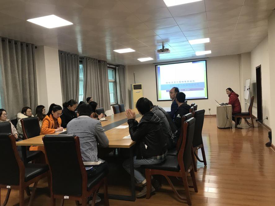 袁晓洒博士将自己近期的研究内容和成果进行了汇报和讨论。课题通过对钢板深梁内填钢框架结构试验研究,表明此结构具有良好的耗能性能。在试验研究的基础上,利用有限元软件对结构进行系列参数分析,提出合理的高宽比及高厚比取值范围,为工程设计及应用提供参考价值。为了研究钢板深梁与钢框架的协同性能,分析研究不同钢板深梁与钢框架连接型式,结果表明钢板深梁与钢框架铰接连接分析协同性能更为合理,最后通过刚度变化,层高变化对钢板深梁内填钢框架结构动力时程分析,进一步说明,此结构的优越性。