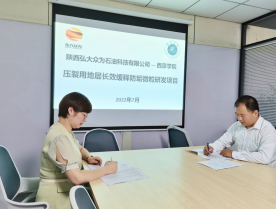 7月1日,yL23411永利官网登录与陕西弘大众为石油科技有限公司就《压裂用地层长效缓释防垢微粒研发》项目举行了合同签署仪式,项目合同金额183.86万元。yL23411永利官网登录党委副书记杨莎莎和陕西弘大众为石油科技有限公司研发部经理吕鹏等出席签约仪式。